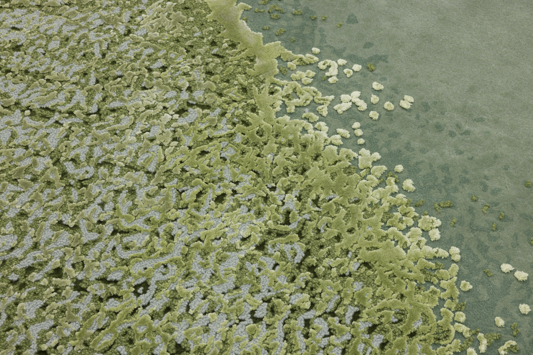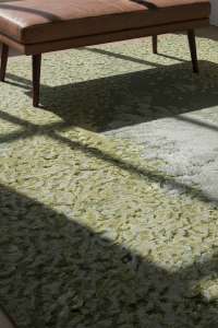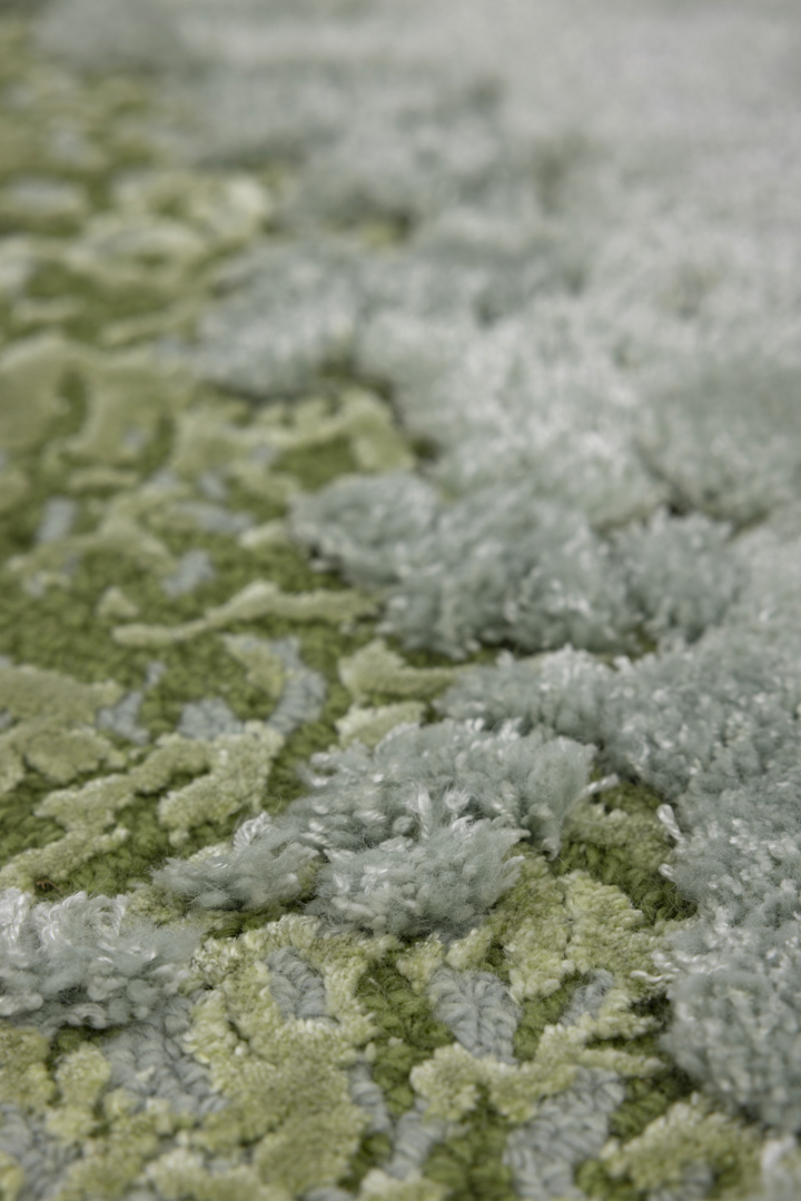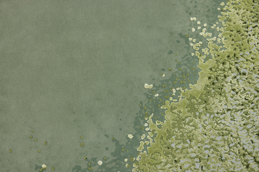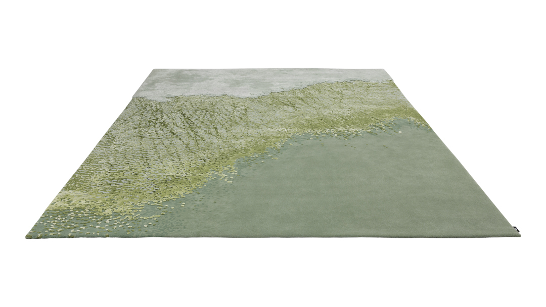 Jade Ribbon takes inspiration from the gently flowing streams that nourish life, representing the vitality of ripening crops. The design explores the raw, complex interplay of textures, where materials converge to mimic the dynamic yet tranquil surface of water meeting earth. The result is an intricate piece that brings the quiet energy of growth into the interior space.