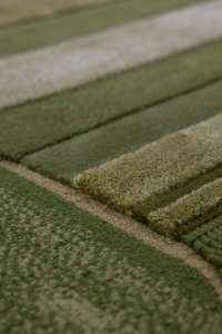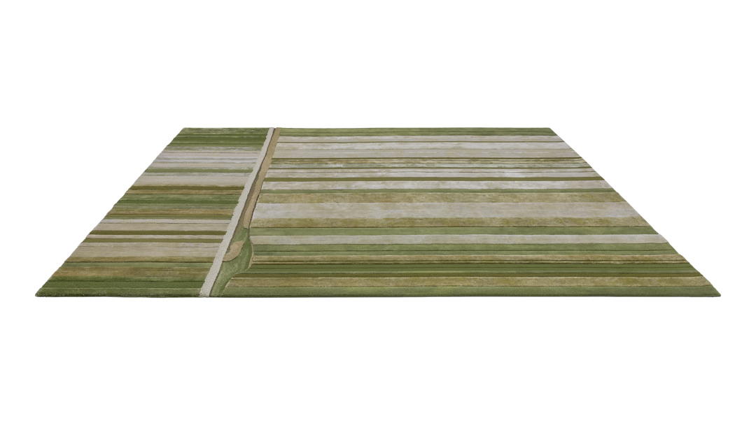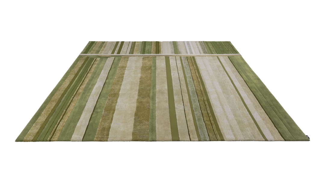 Pasture Lace captures the awakening of life as seen in sprouting grass. The design uses subtle vertical striping and fine colour gradations to interpret the delicate, harmonious flow of first growth. This piece acts as a sophisticated foundation, welcoming the light and movement of Spring through a deeply tactile surface.