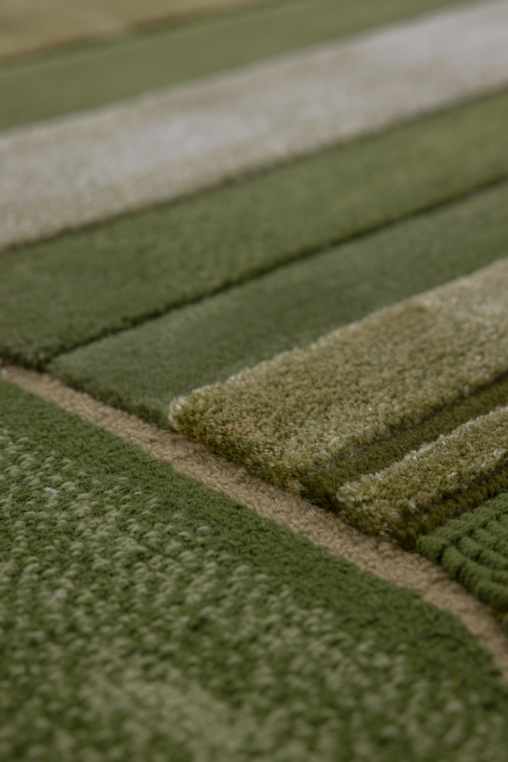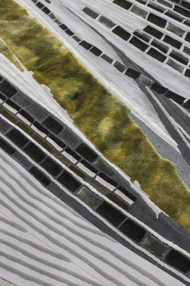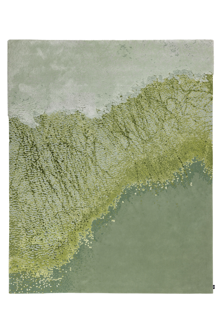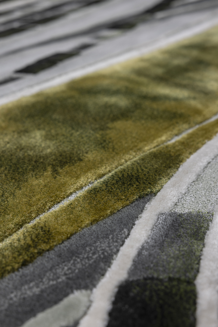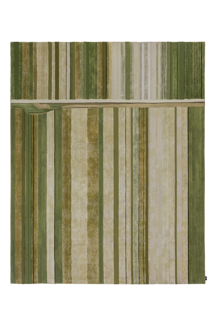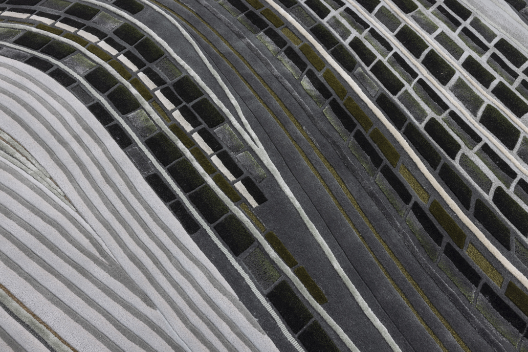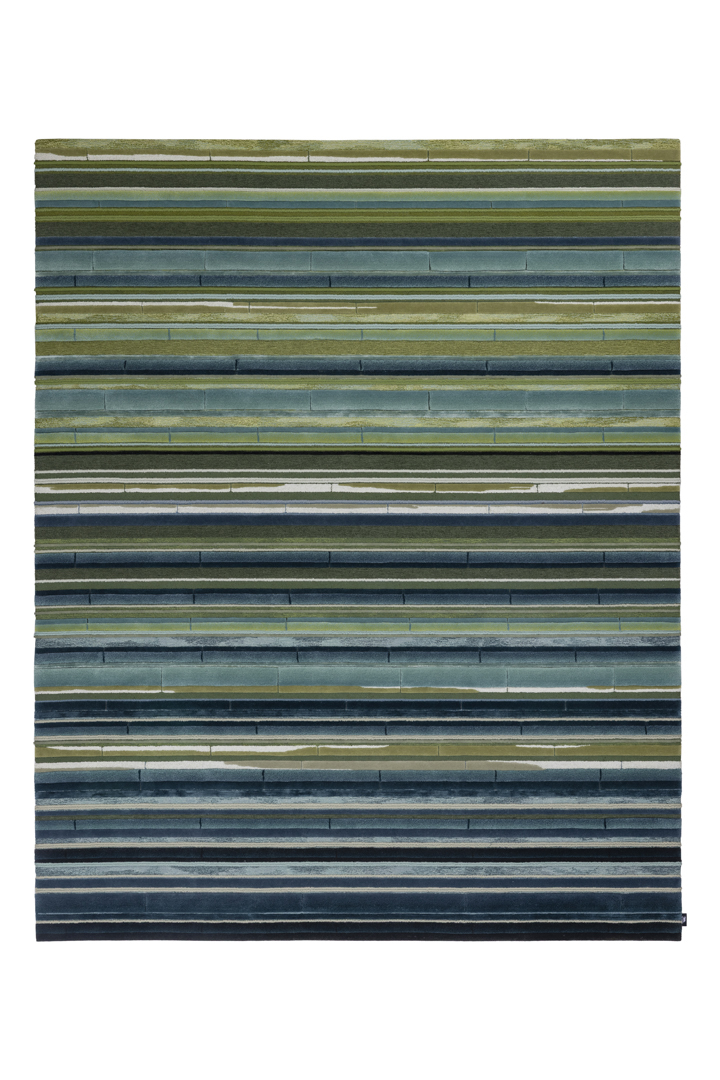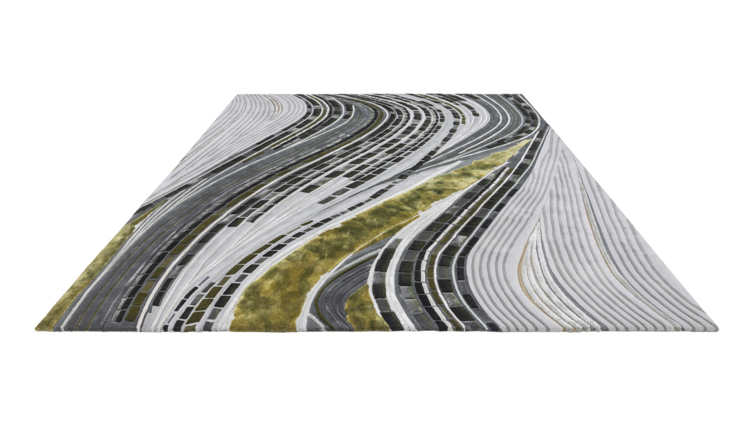 Celebrating nature's dynamic energy, Silver Threads mirrors the vast, flowing rivers of summer. The design is a powerful visual expression featuring strong, rhythmic curved lines and sweeping fields of colour variation that convey the sheer force and movement of water. This highly dynamic piece of contemporary design translates the vitality of the season into an interior narrative.